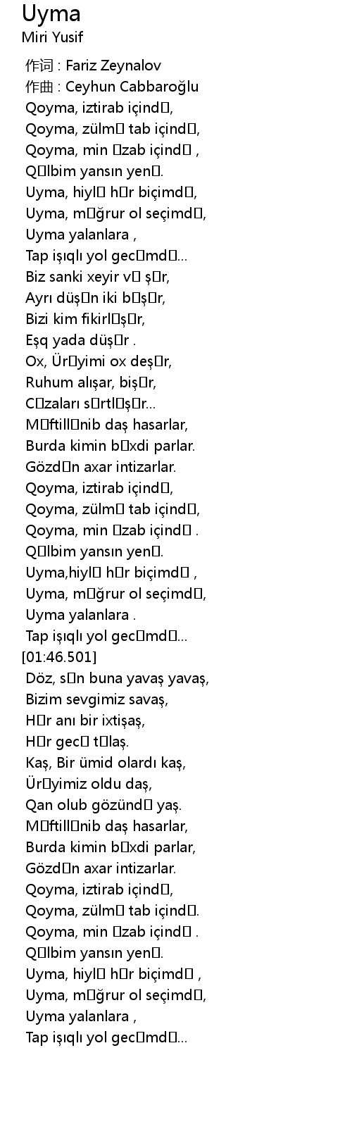 | [00:00.000] | 作词 : Fariz Zeynalov |
