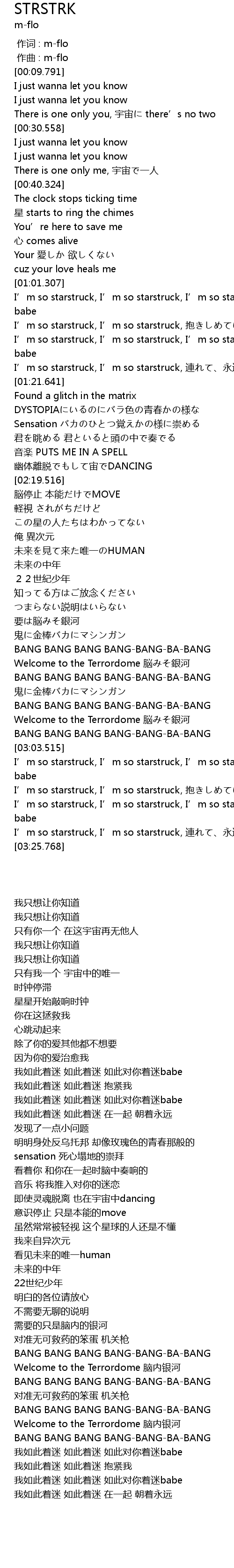 | [01:11.391] | I' m so starstruck, I' m so starstruck, I' m so starstruck of you babe |