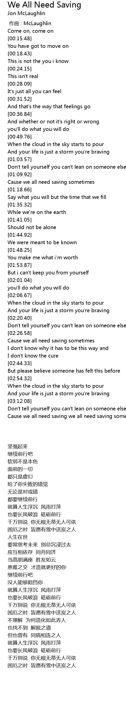 | [03:18.66] | Cause we all need saving we all need saving sometimes |
