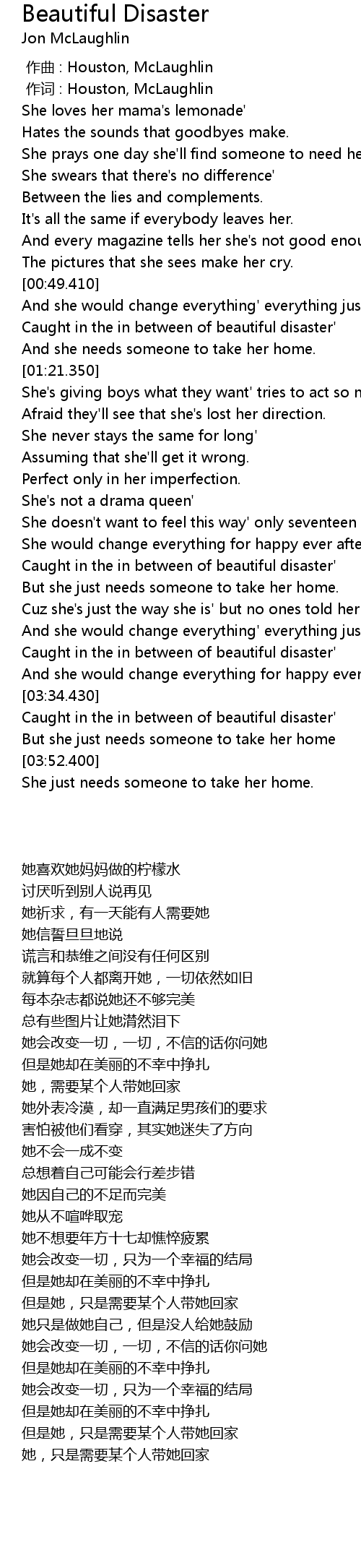 | [00:01.00] | 作词 : Houston, McLaughlin |