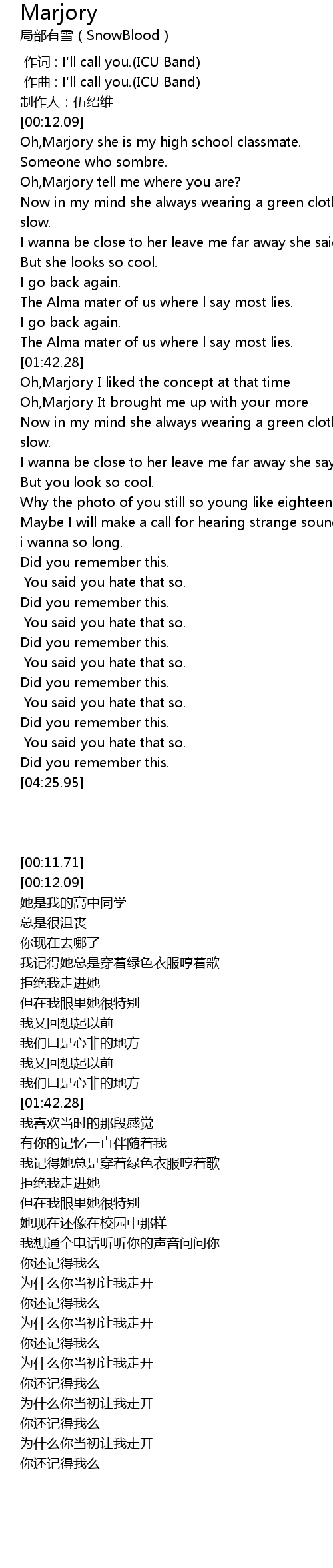 | [02:17.63] | Oh, Marjory It brought me up with your more |