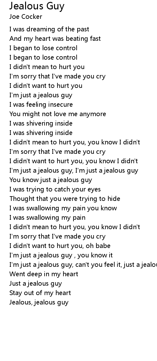 I'm just a jealous guy, can't you feel it, just a jealous guy |
