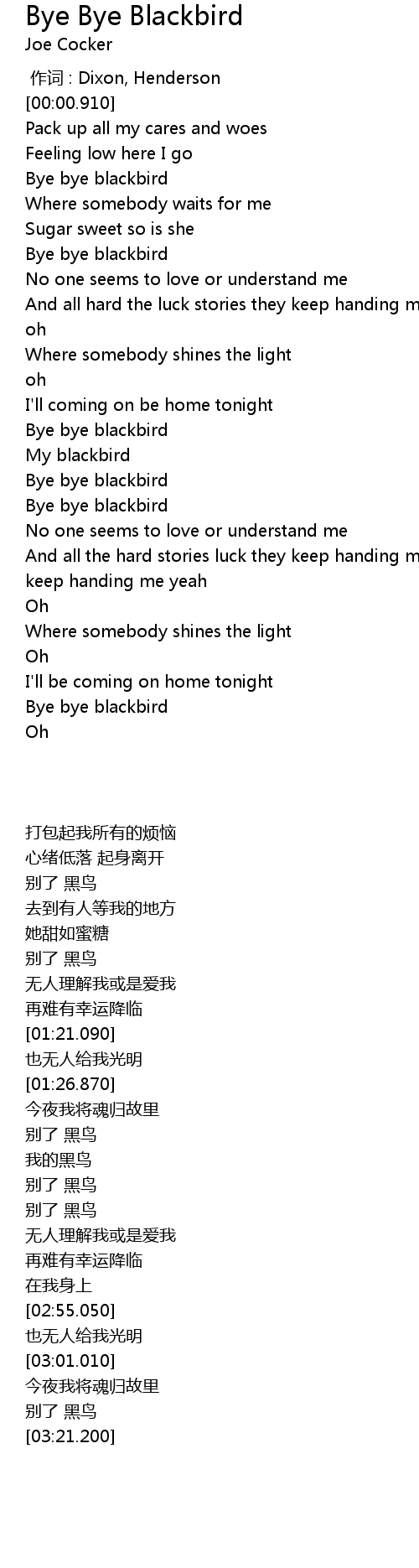 | [00:23.740] | Bye bye blackbird |