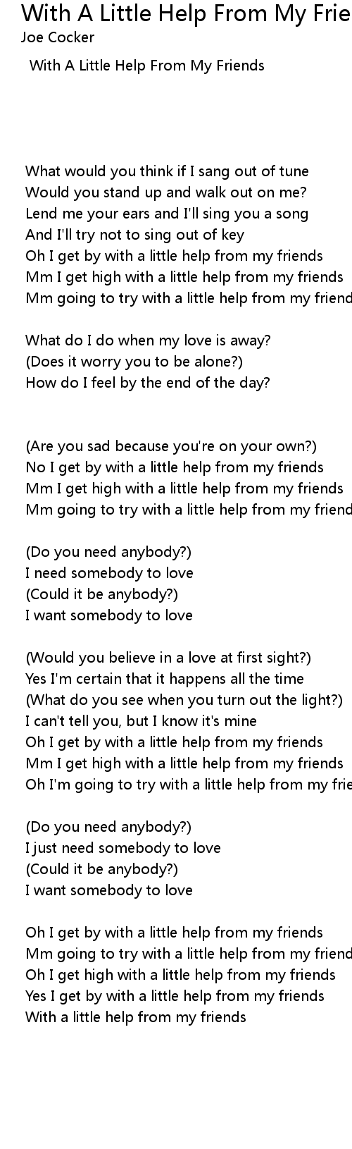 Yes I get by with a little help from my friends |