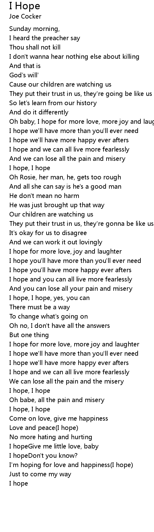 I'm hoping for love and happiness(I hope) |
