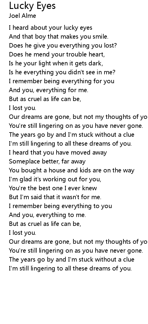 I heard about your lucky eyes |