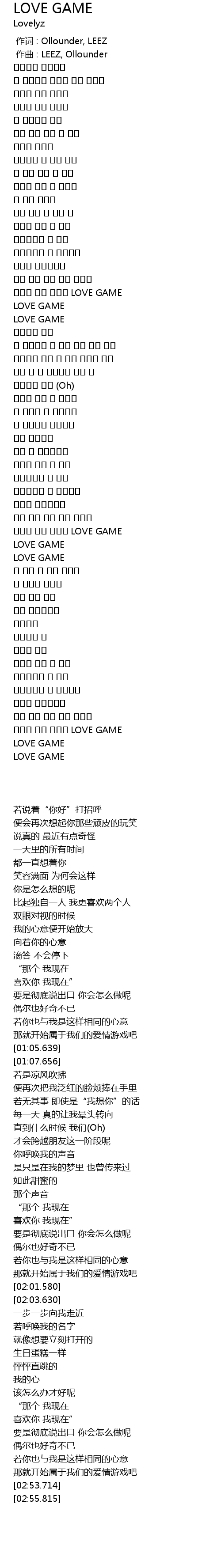 | [01:57.552] | 시작된 거야 우리의 LOVE GAME |