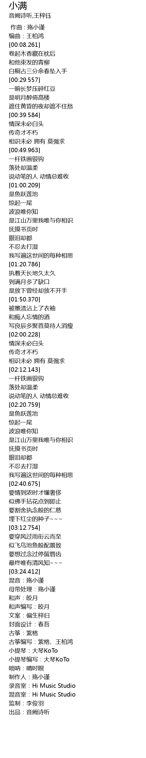 | [03:25.299] | hùn yīn: shāng xiǎo jǐn |