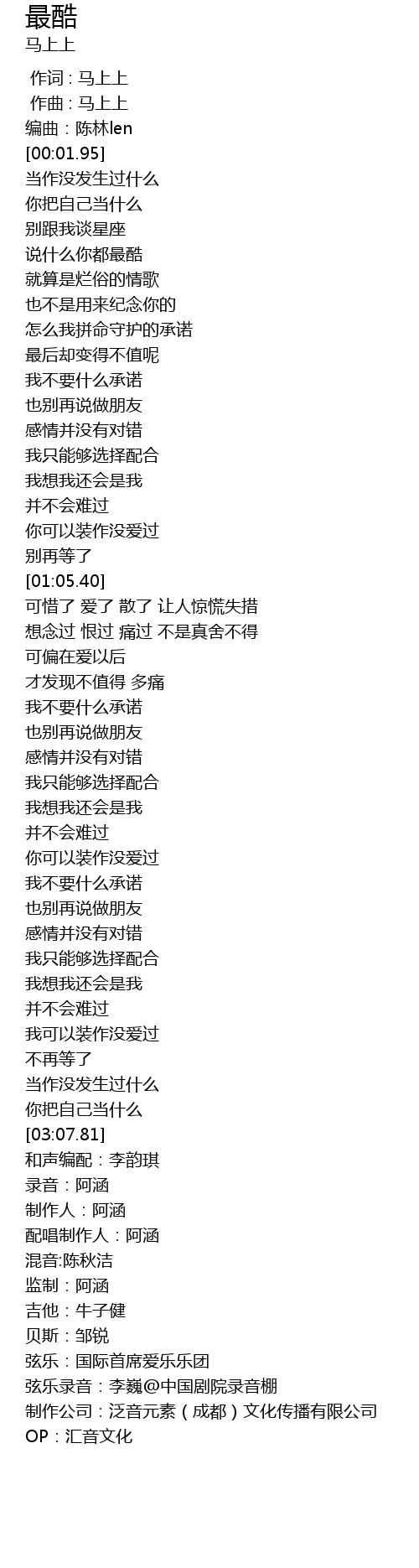 | [03:21.688] | 制作公司:泛音元素(成都)文化传播有限公司 |