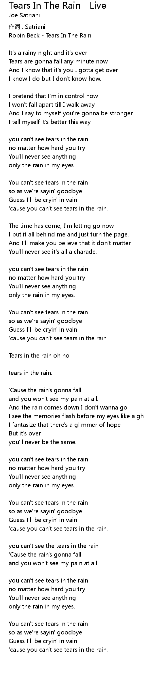 | Tears in the rain oh no | |