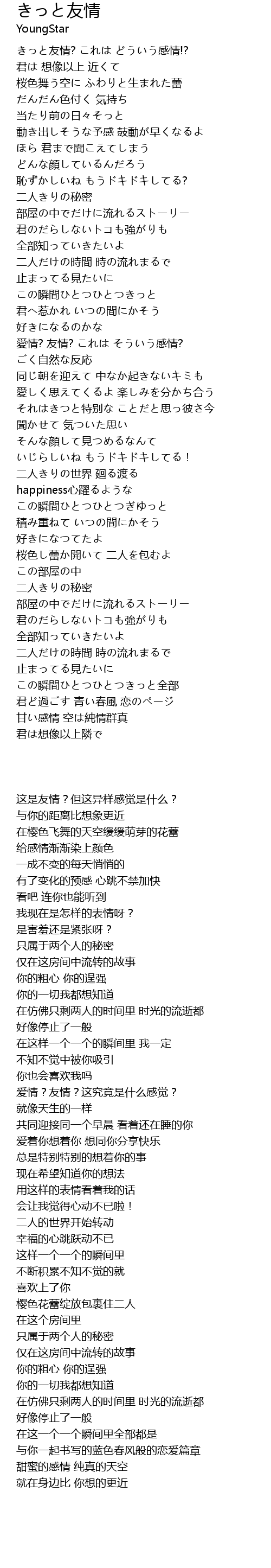 | [00:14.910] | きっと友情? これは どういう感情!? |