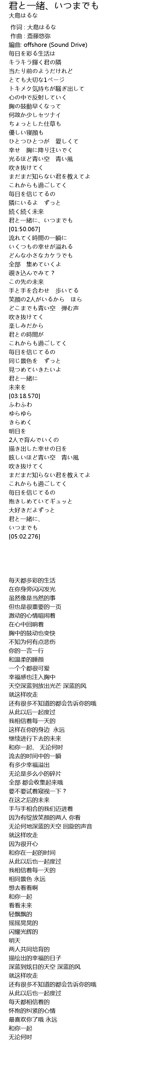 | [01:38.024] | 君と一緒に、いつまでも |