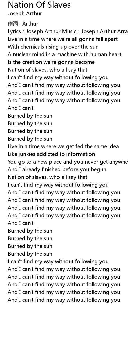 | Lyrics:Joseph Arthur Music:Joseph Arthur Arranger:Joseph Arthur | |