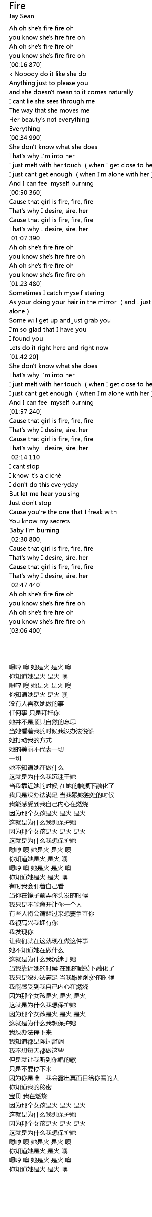 | [00:08.850] | Ah oh she' s fire fire oh |