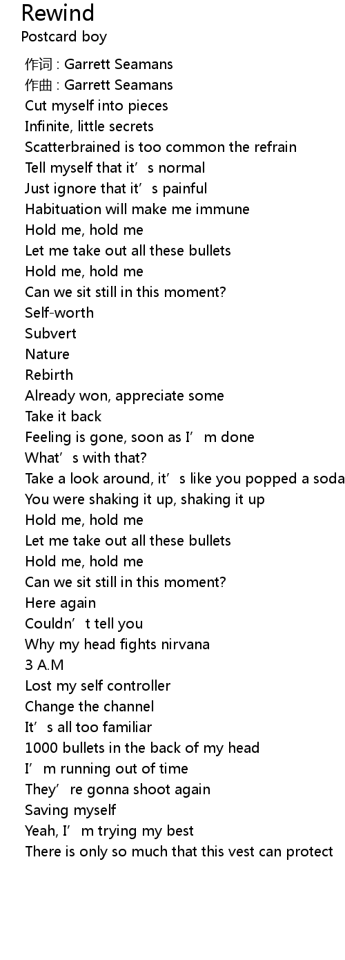 | [02:11.168] | 1000 bullets in the back of my head |
