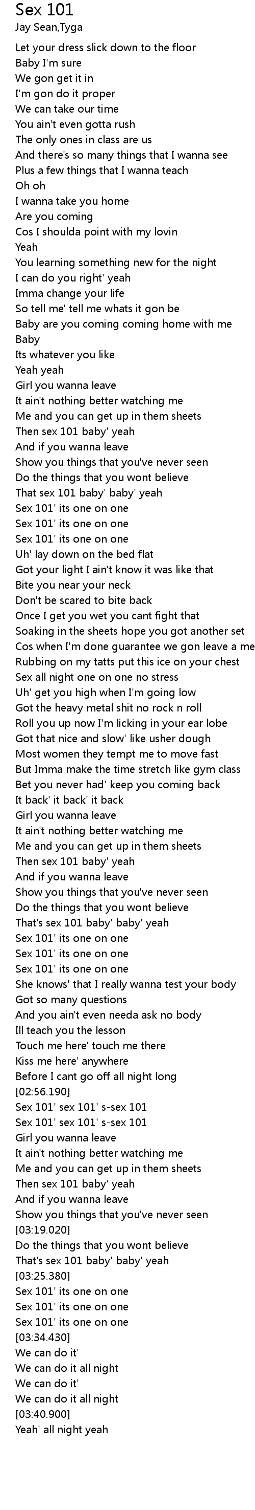 | [01:14.640] | That sex 101 baby' baby' yeah |