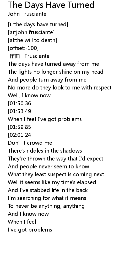 | [00:40.96][02:01.24] | I' m awaiting life as another man |