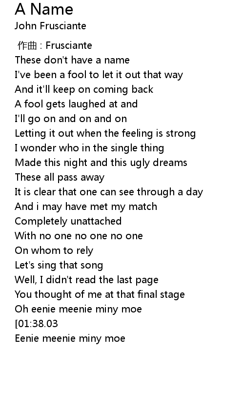 | [00:00.00] | 作曲 : Frusciante |