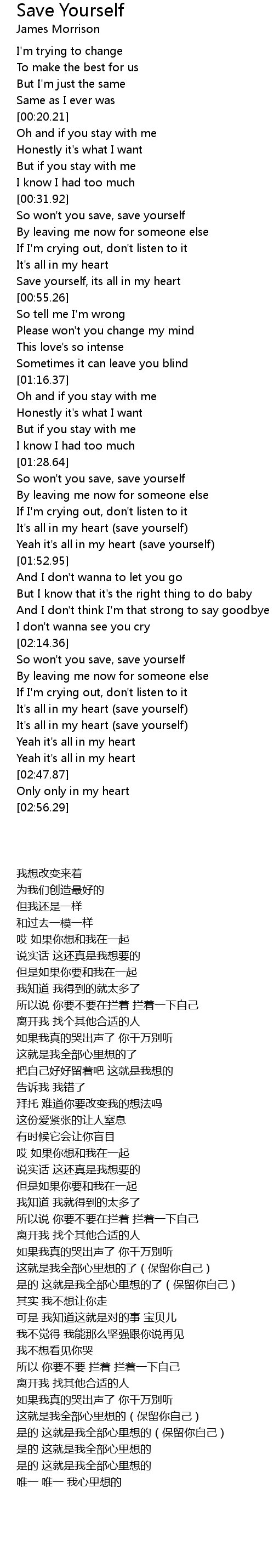 Save yourself, its all in my heart |
