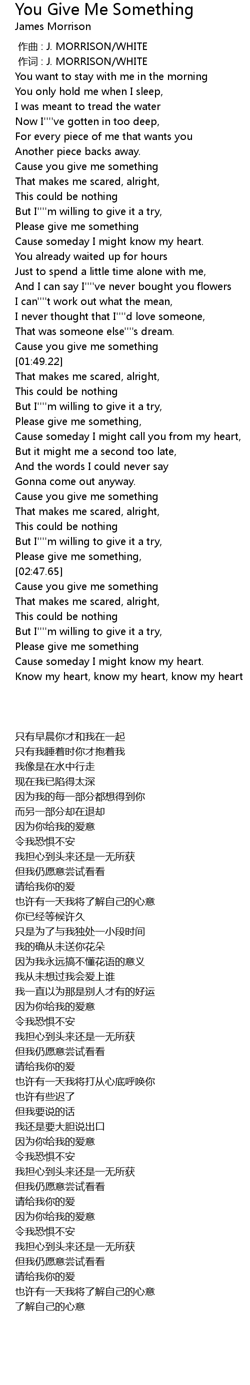 | [00:01.00] | 作词 : J. MORRISON/WHITE |