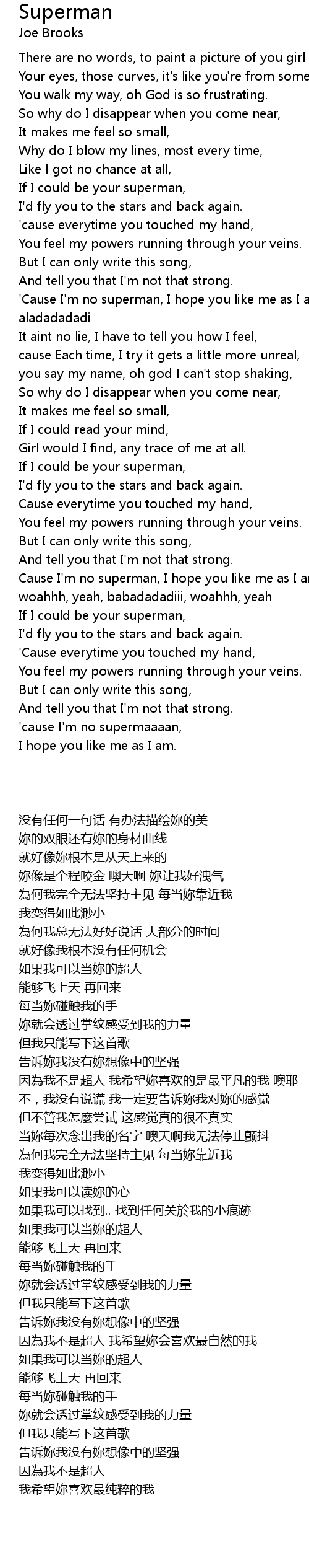 Cause I'm no superman, I hope you like me as I am - ladadadi, woahhhh, woahhh, yeah, babadadadiii, woahhh, yeah |