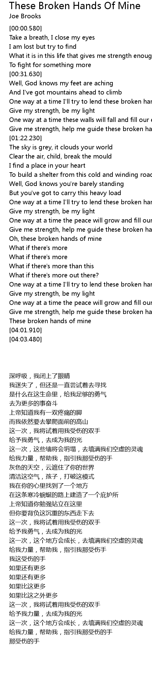 Give me strength, help me guide these broken hands of mine |