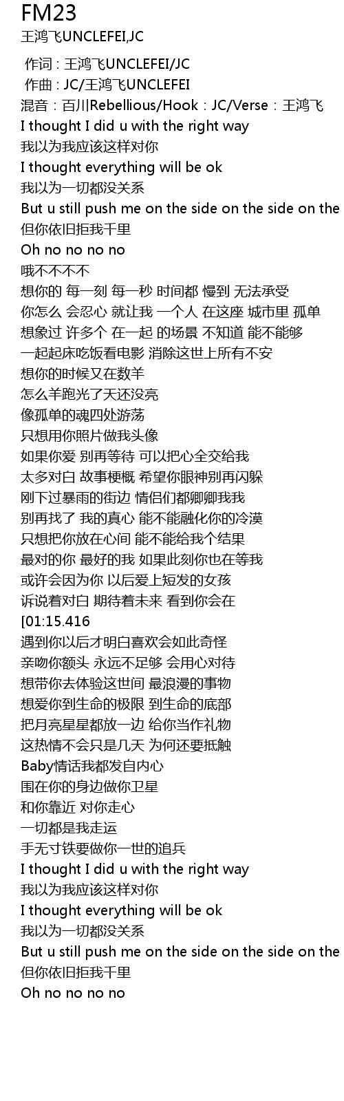 | [00:01.000] | zuo qu : JC wang hong fei UNCLEFEI |