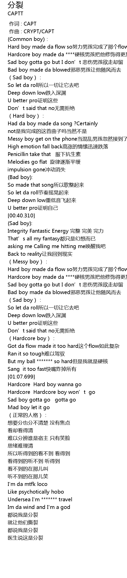 | [01:38.949] | 都说我是分裂 |