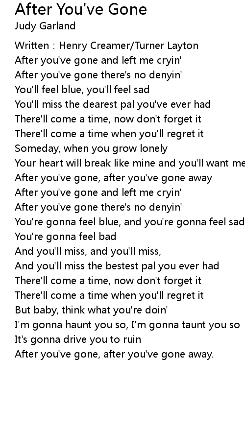 | After you' ve gone, after you' ve gone away. |