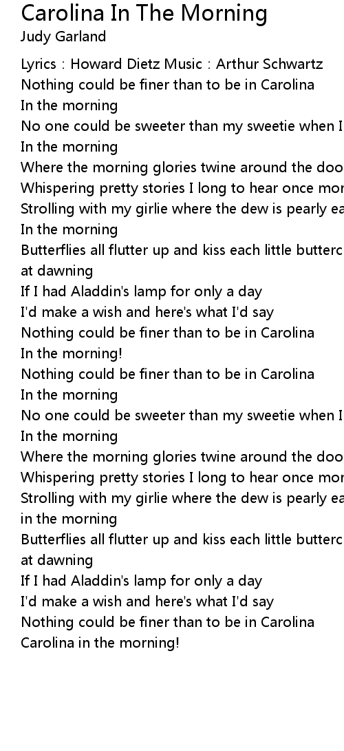 | Song | Carolina In The Morning |