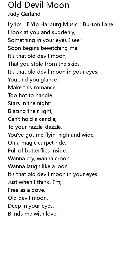 | It' s that old devil moon in your eyes. | |