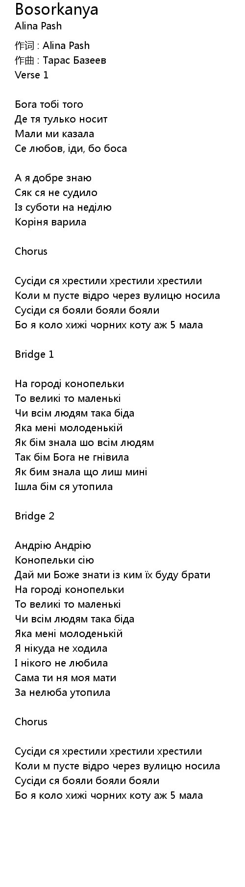 作词 : Alina Pash |