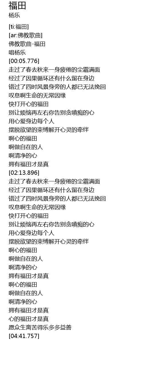 | [00:02.780] | fó jiào gē qǔ fú tián |