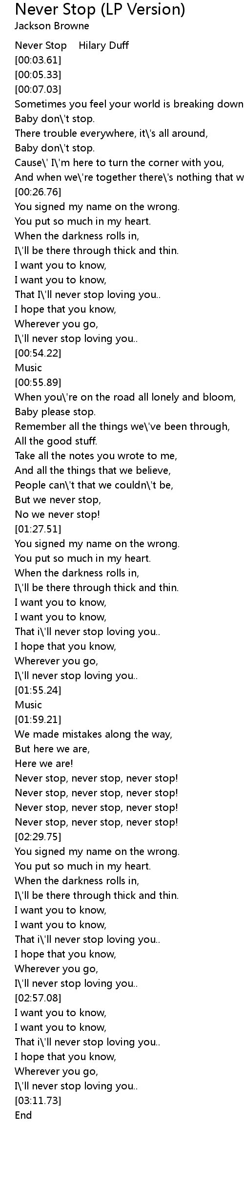 Never Stop Hilary Duff |