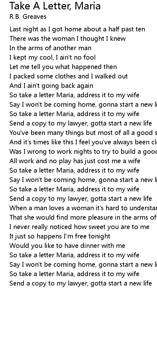 So take a letter Maria, address it to my wife |