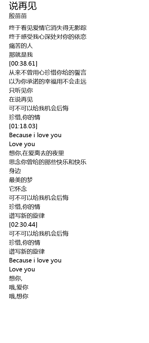 | [00:39.96] | 从来不曾用心珍惜你给的誓言 |