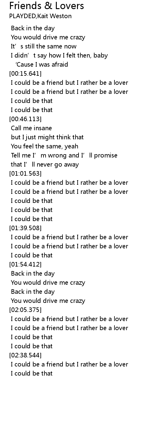 | [02:45.884] | I could be a friend but I rather be a lover |