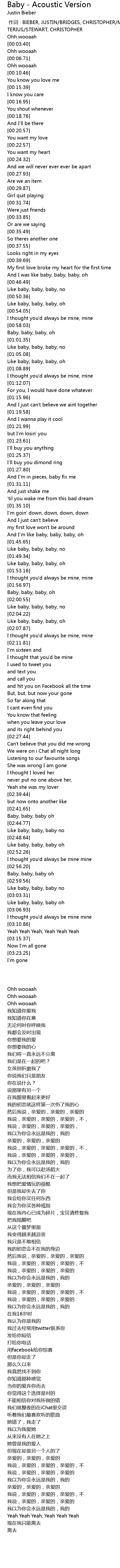 | [03:04.11] | Like baby, baby, baby oh |