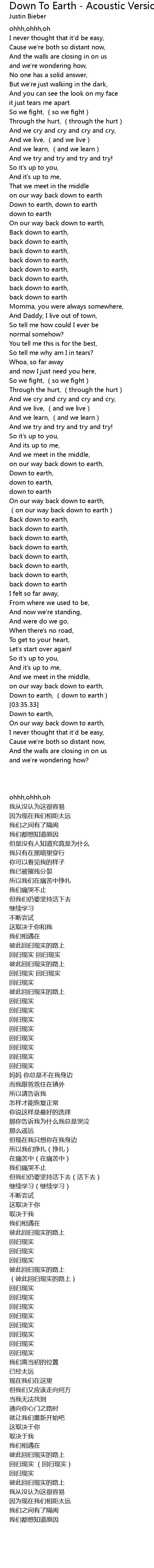| [01:11.53] | Down to earth, down to earth |