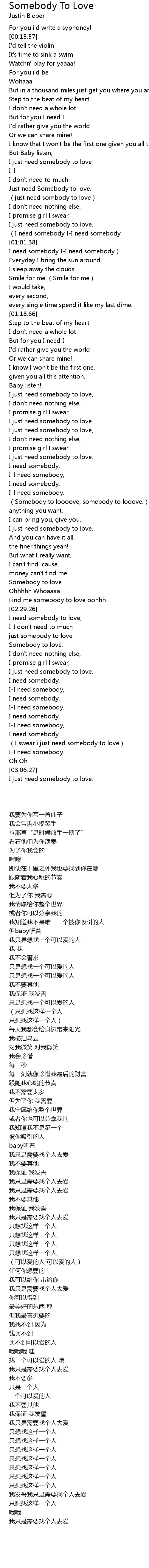 | [01:57.77] | (Somebody to loooove, somebody to looove.) |
