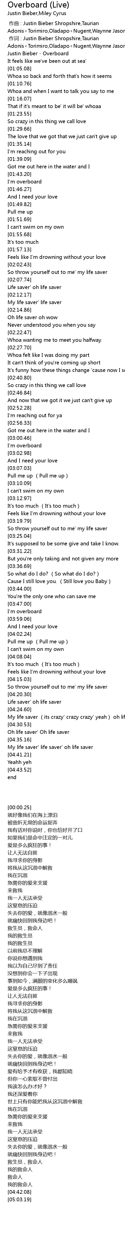 | [00:00.25] | Justin Bieber - Overboard |