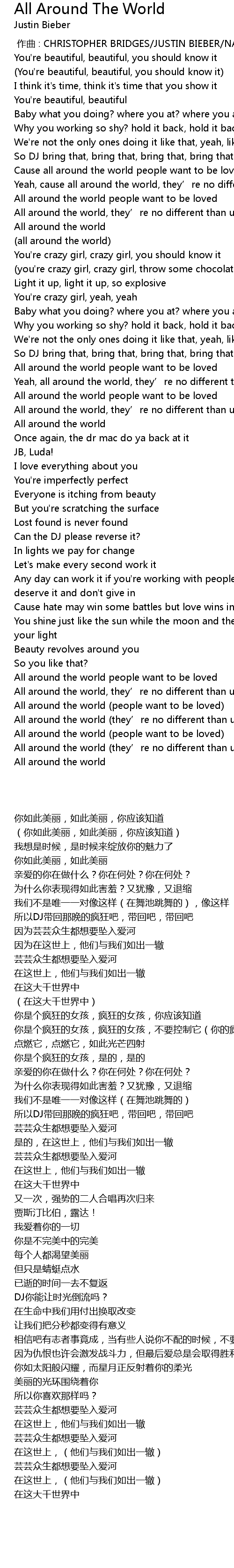 | [00:00.00] | zuo qu : CHRISTOPHER BRIDGES JUSTIN BIEBER NASRI ATWEH ADAM MES |