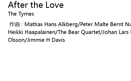 | [00:00.000] | zuo qu : Mattias Hans Alkberg Peter Malte Bernt Nuottaniemi Jari Heikki Haapalainen The Bear Quartet Johan Lars Forsling Magnus Olof G ran Olsson Jimmie H Davis |