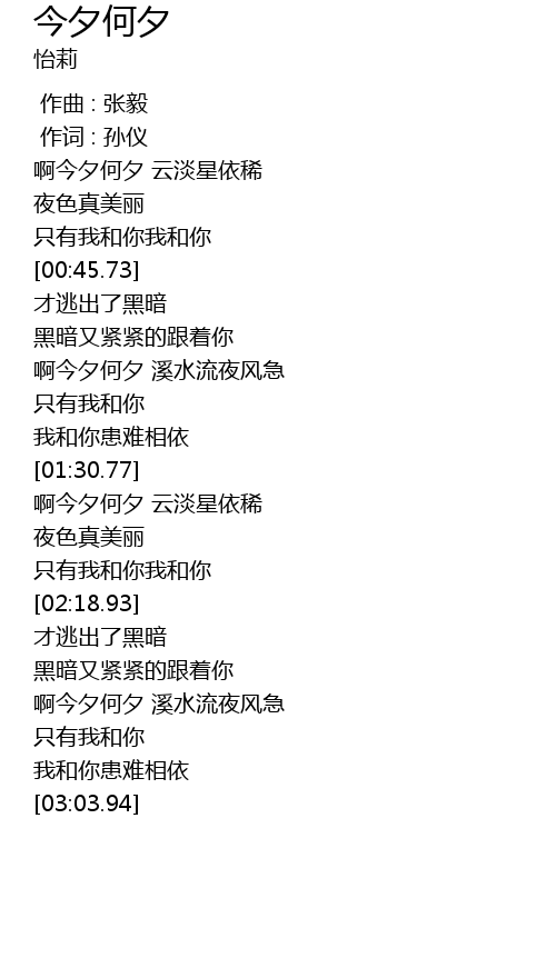 | [00:18.15] | 啊今夕何夕 云淡星依稀 |