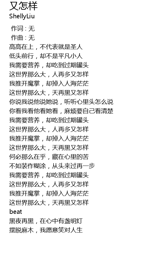 | [00:55.835] | zhè shì jiè nà me dà, tiān zài hēi yòu zěn yàng |