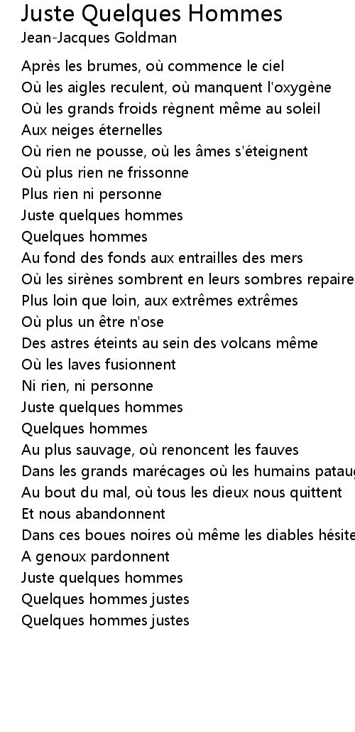 | Song | Juste Quelques Hommes |