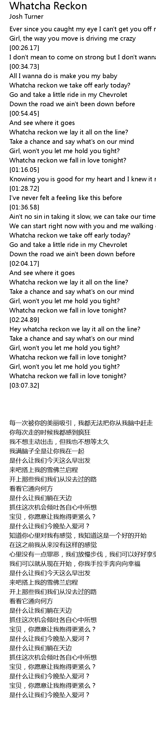 Whatcha reckon we fall in love tonight? |