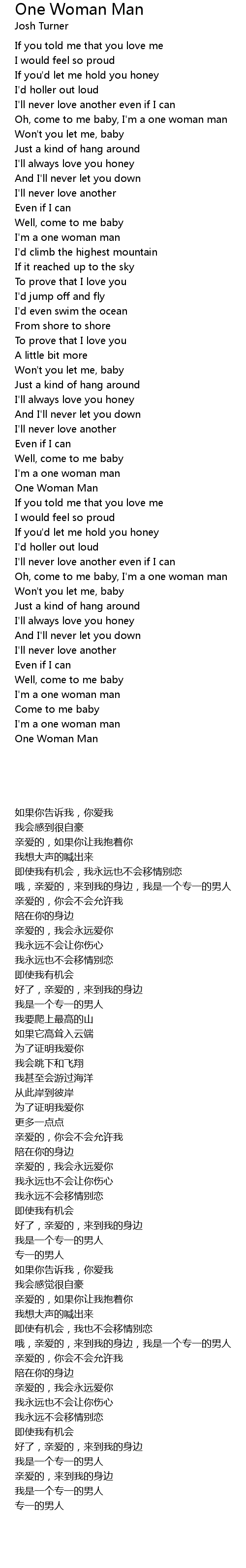Oh, come to me baby, I'm a one woman man |