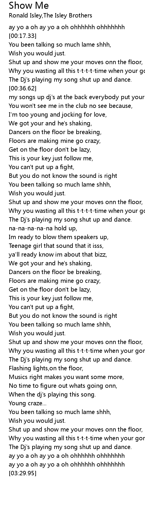Shut up and show me your moves onn the floor, |
