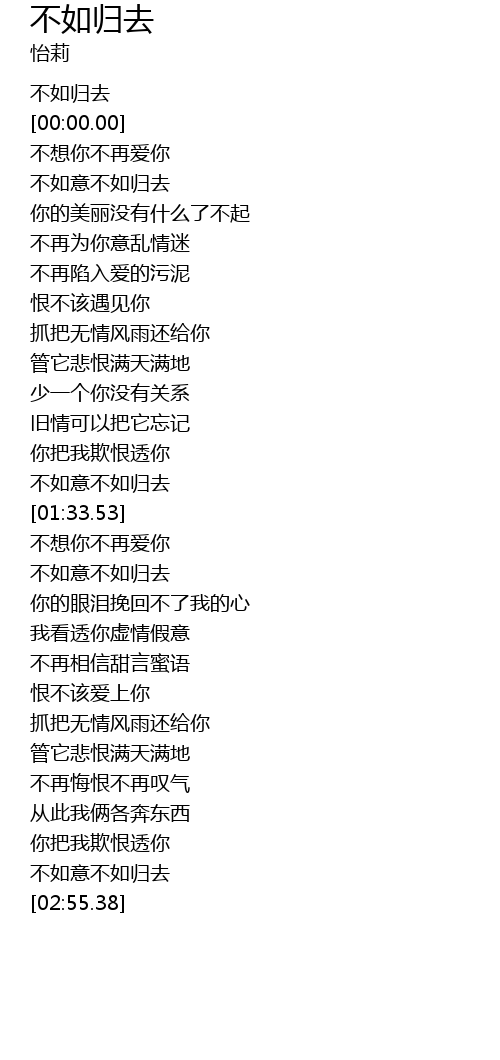 | [00:00.00] | 不如归去 |